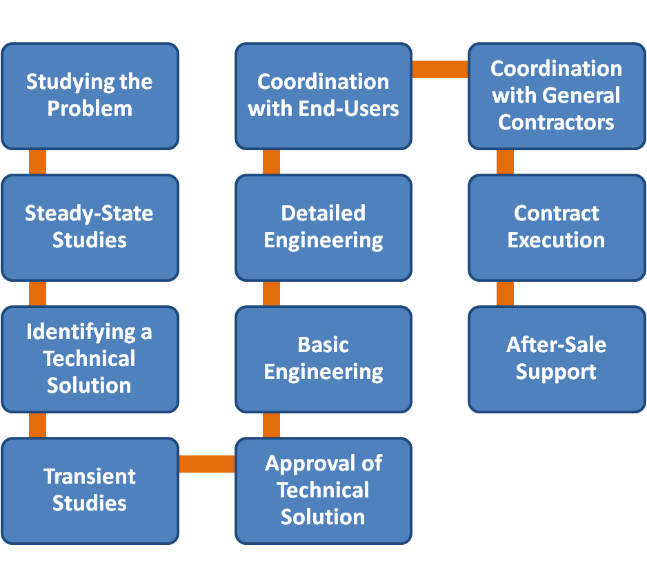 - Electricity sector studies: network integrity and reliability assessment, new generation and transmission integration, short circuit analysis, protection system evaluation and recommendation studies, analysis of the reactive power compensation and recommendations.